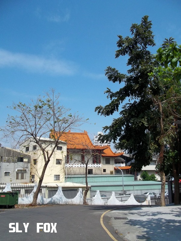 從台南醫院邊緣看廣慈院廟脊,可感受地勢落差。台南廟宇習慣冠古地名,是瞭解府城古地名很好的線索,廣慈院所用古地名就是「右營埔」。